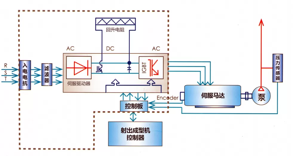 2.大中型注射器采用雙泵或多泵合流方式,對(duì)伺服采用特殊控制技術(shù),實(shí)現(xiàn)伺服油泵控制的完美同步,達(dá)到多臺(tái)油泵合流的完美效果。